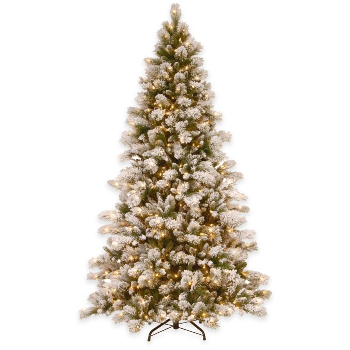 National Tree 7 5 Foot Snowy Westwood Pine Pre Lit Hinged Christmas Tree With Clear Lights Bed Bath Beyond